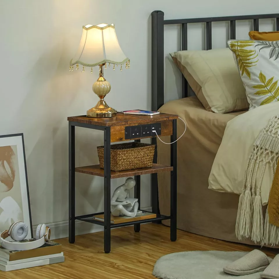 A thoughtfully placed gap in the power panel allows cables to pass through, keeping your space neat and organized. The 3-tier design provides ample room for a lamp, books, remotes, or decorative items while maintaining a minimalist, modern look.
